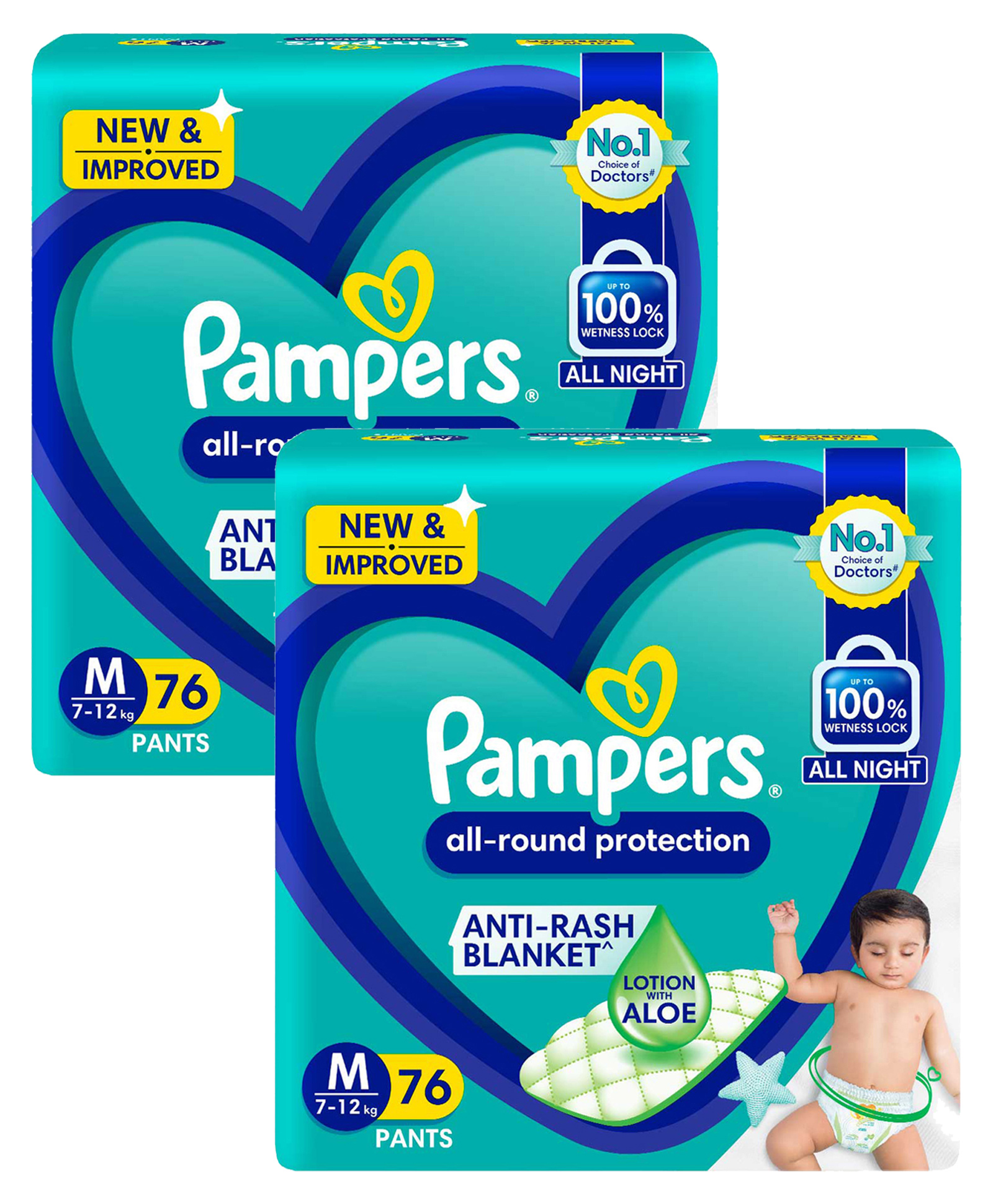 Pampers Pant Style Diapers Medium Size - 76 Pieces (Pack of 2)