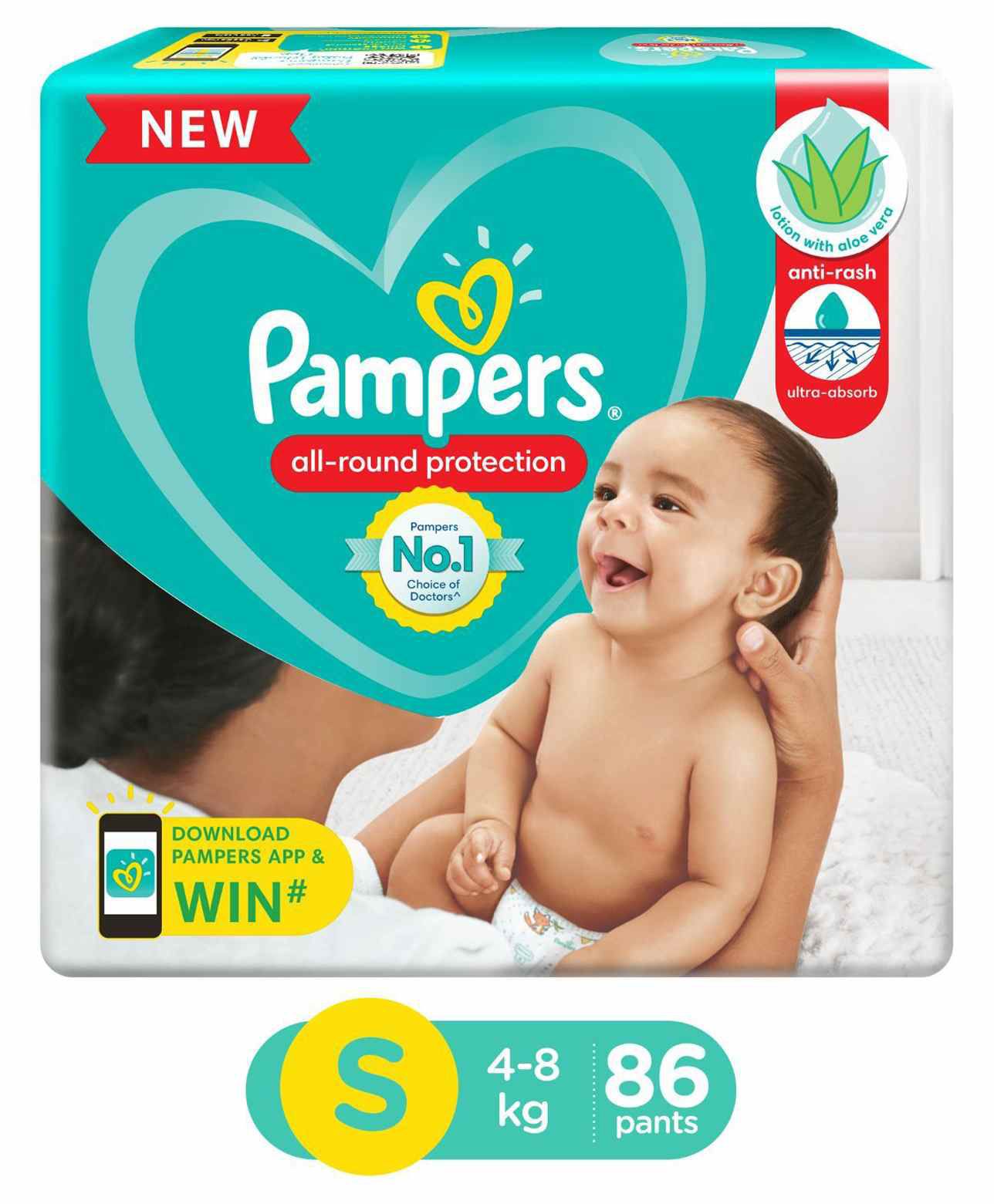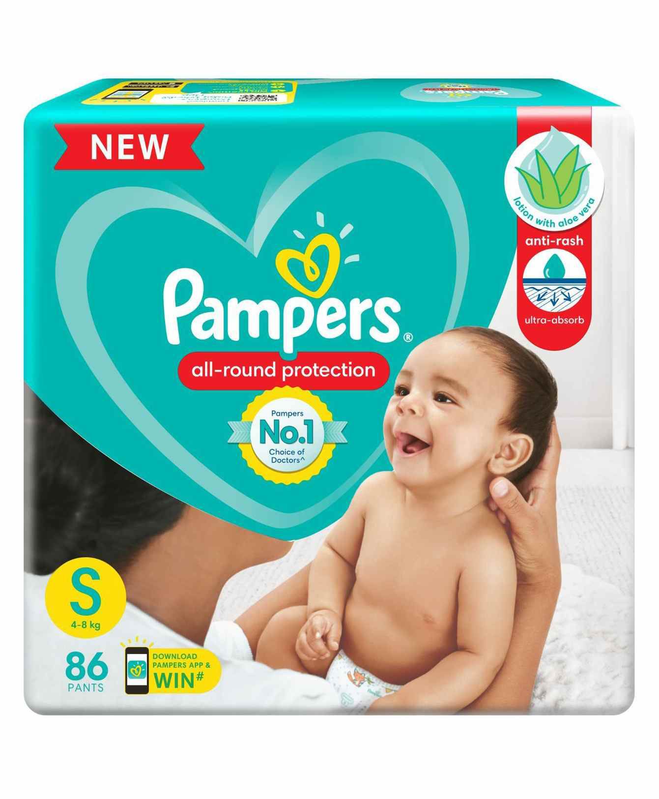 Pampers Complete Skin Comfort Pants, Anti-rash blanket, Lotion with Vitamin E & Aloe Vera, Small size baby Diapers, (s) 86 Count, 4-8 kg