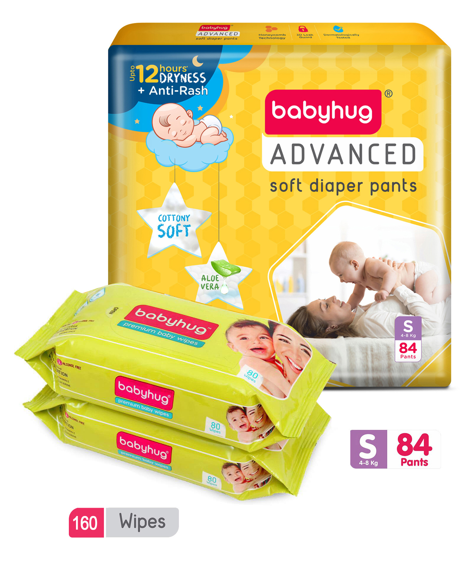 Babyhug Advanced Pant Style Diapers Small (S) Size - 84 Pieces, Honeycomb Technology, Cottony Soft Diaper with 3D Leak Guard, Latex & Alcohol Free, Anti-rash & Gentle