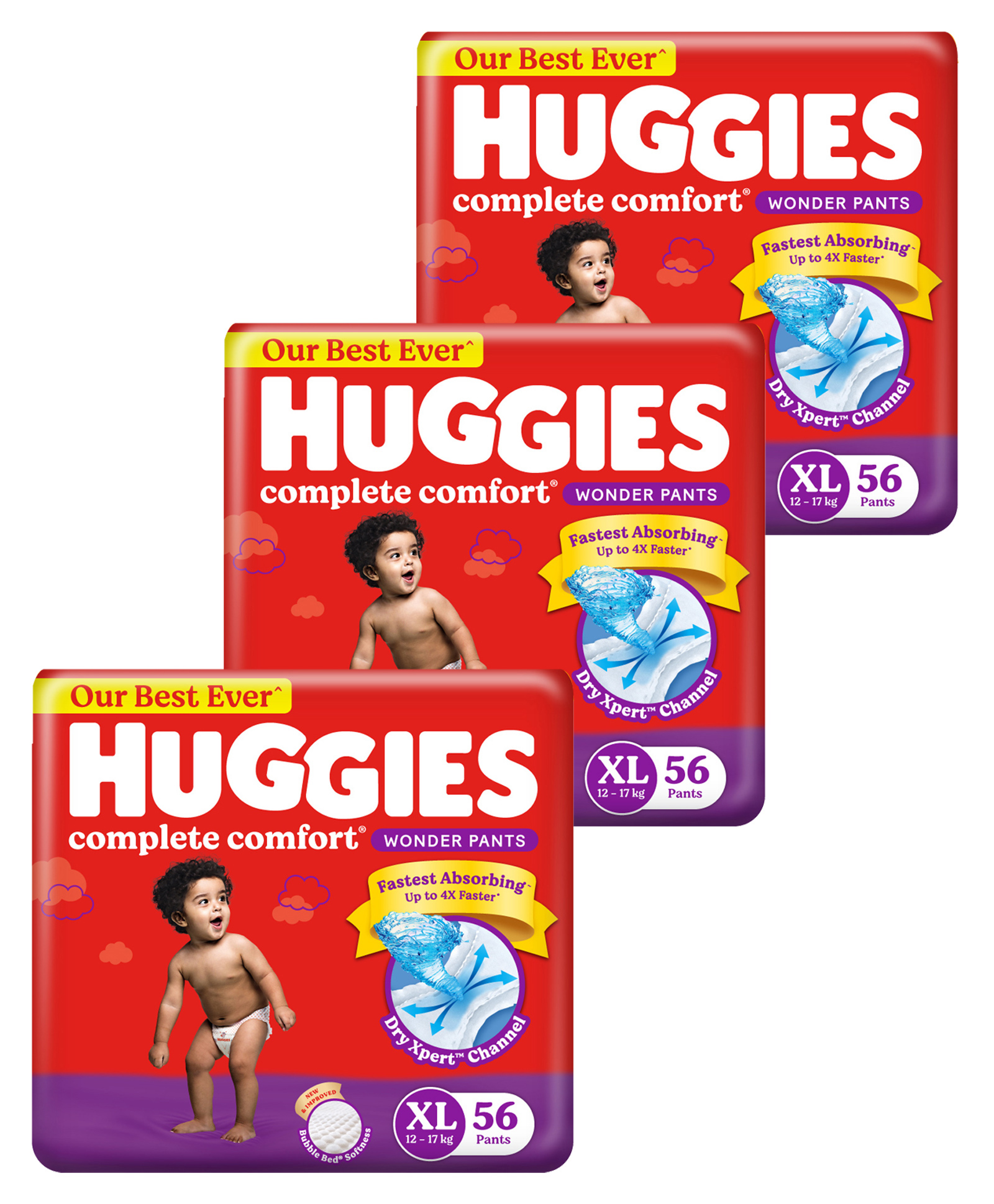 Huggies Complete Comfort Wonder Pants, India's Fastest Absorbing Diaper | XL Size, 56 Diapers