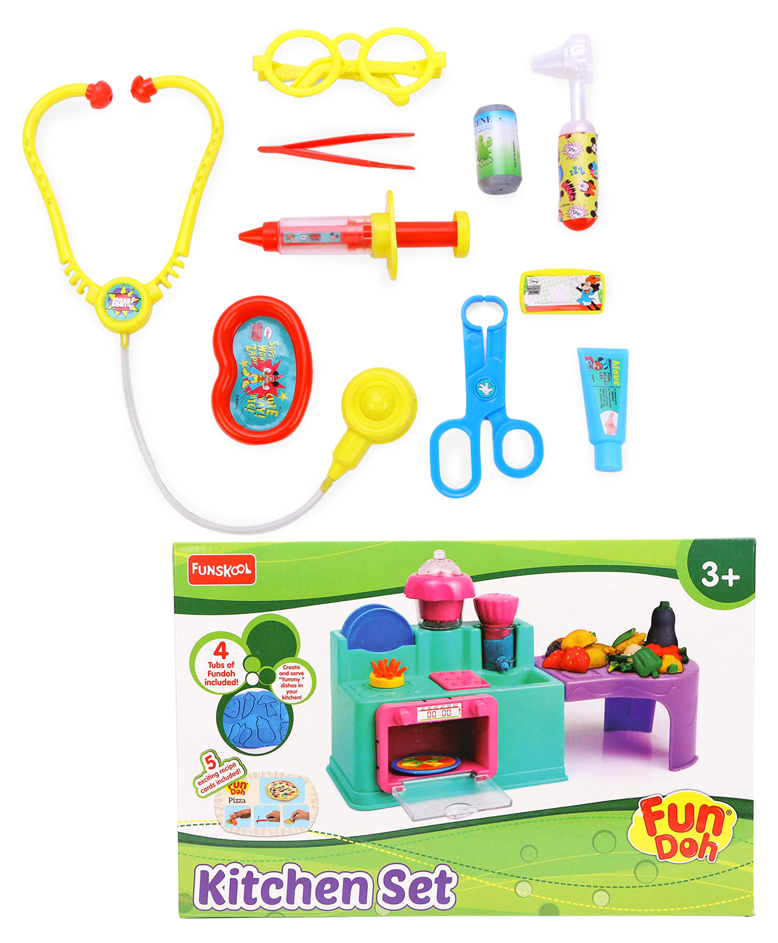 Fun Dough Kitchen Playset - Multi Color & Disney Mickey Mouse Doctor Set Multi Color - 10 Pieces