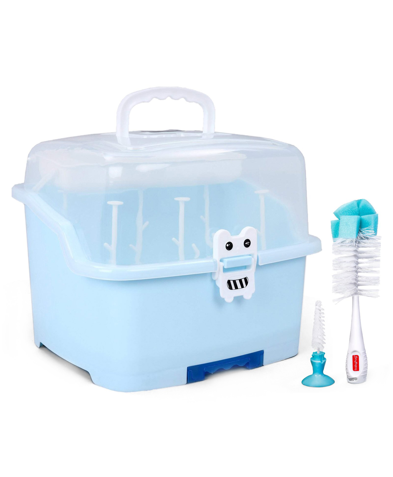 Babyhug 2 in 1 Bottle Drying Rack with Storage Box - Blue & 2 In 1 Bottle & Nipple Cleaning Brush Combo Pack