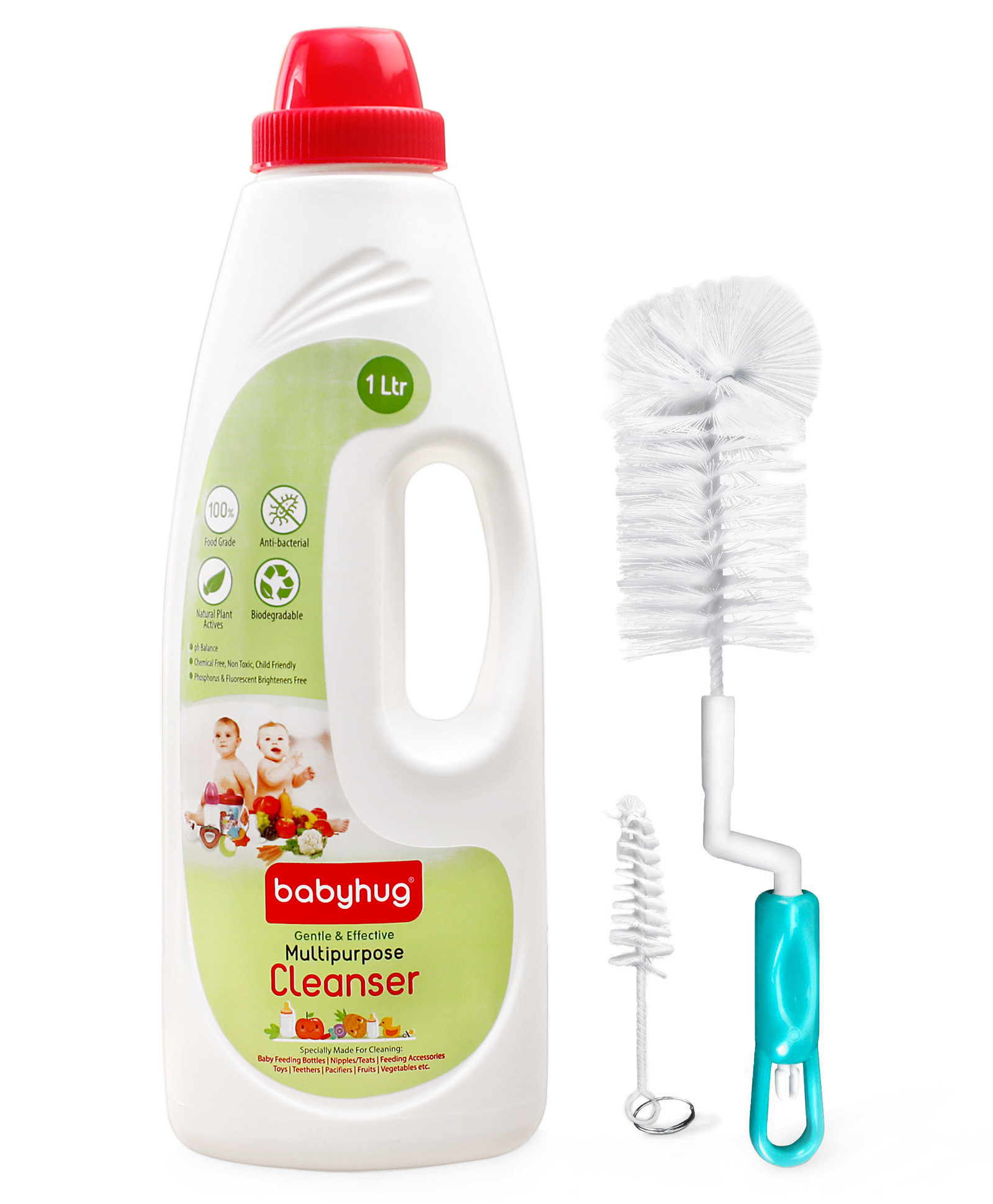 Babyhug Rotating Bottle Cleaning Brush & Liquid Cleanser - 1000 ml Combo Pack