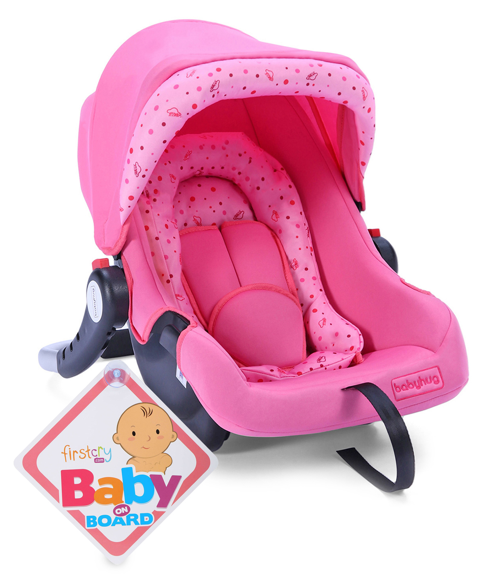 Babyhug Onyx Car Seat Cum Carry Cot With Rocking Base AND Firstcry Baby On Board Sign With Suction Cup (Pink)