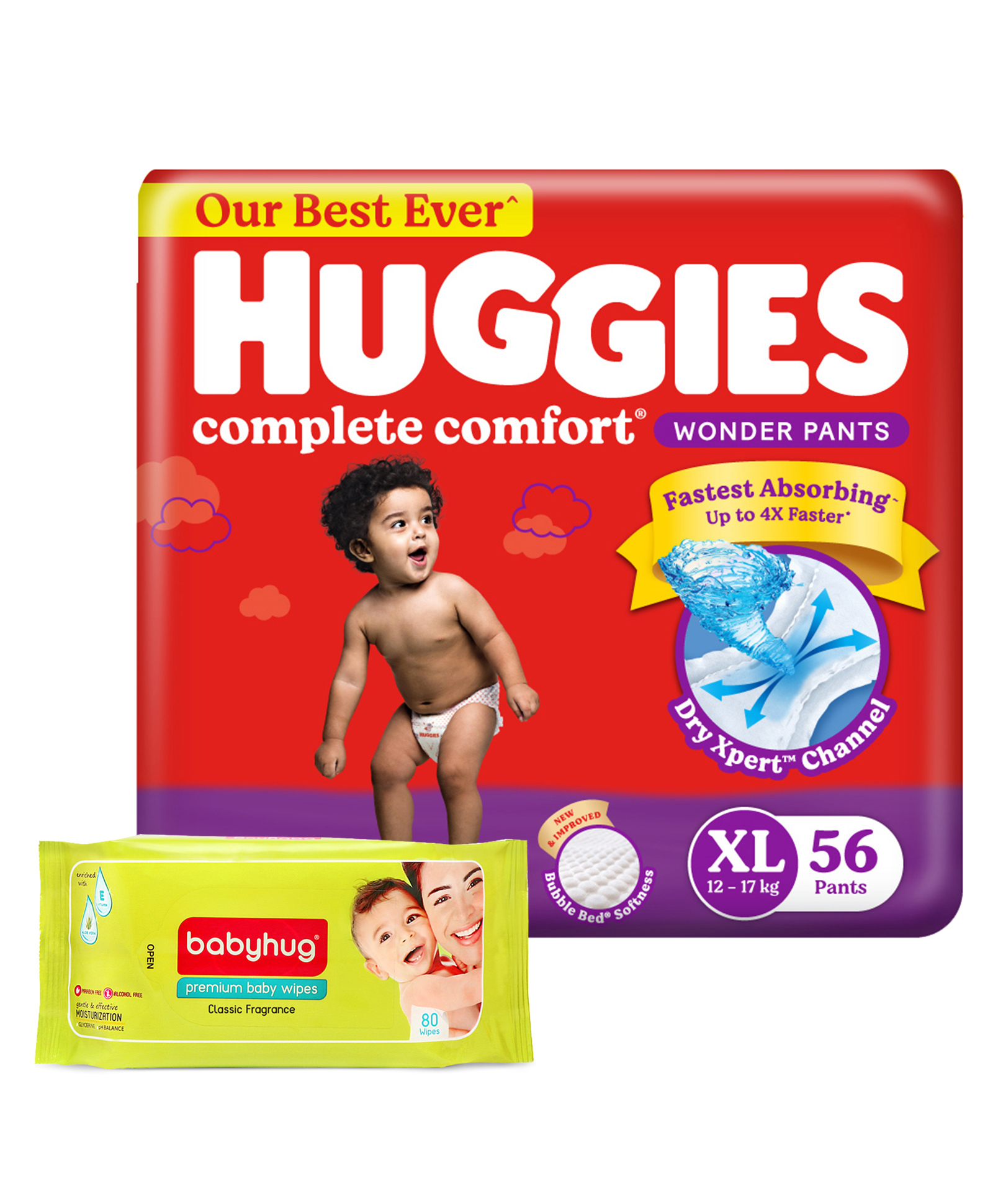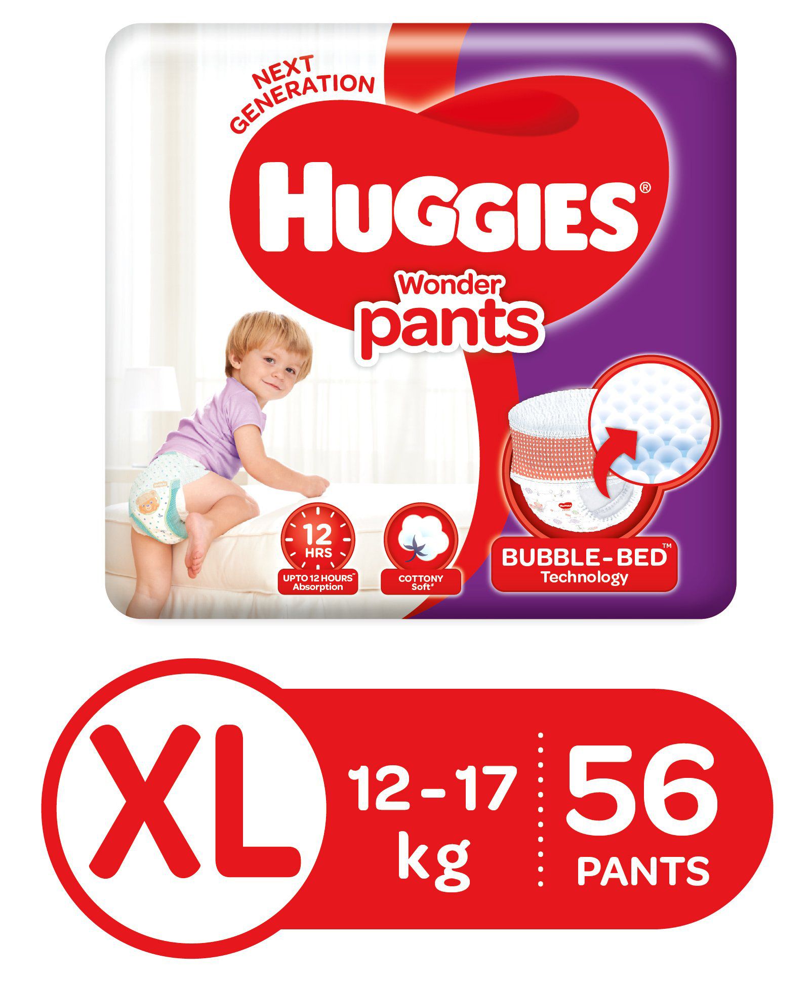 Huggies Complete Comfort Wonder Pants, India's Fastest Absorbing Diaper | XL Size, 56 Diapers