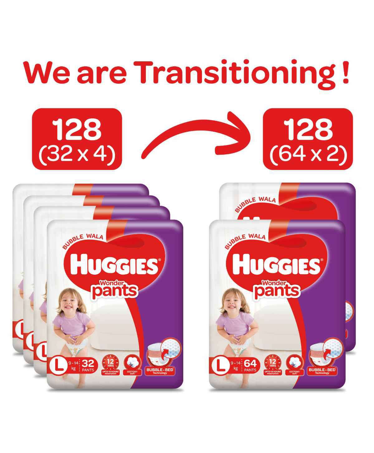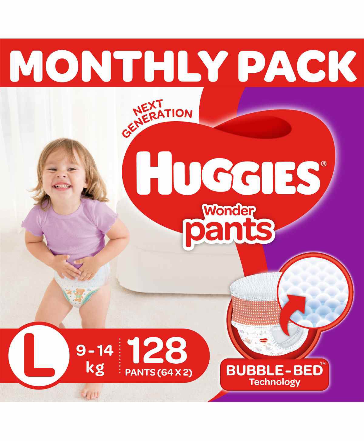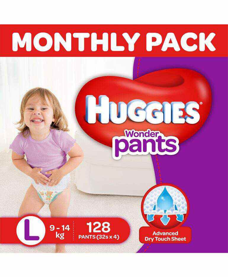 Huggies Complete Comfort Wonder Pants, India's Fastest Absorbing Diaper | L Size, 128 Diapers