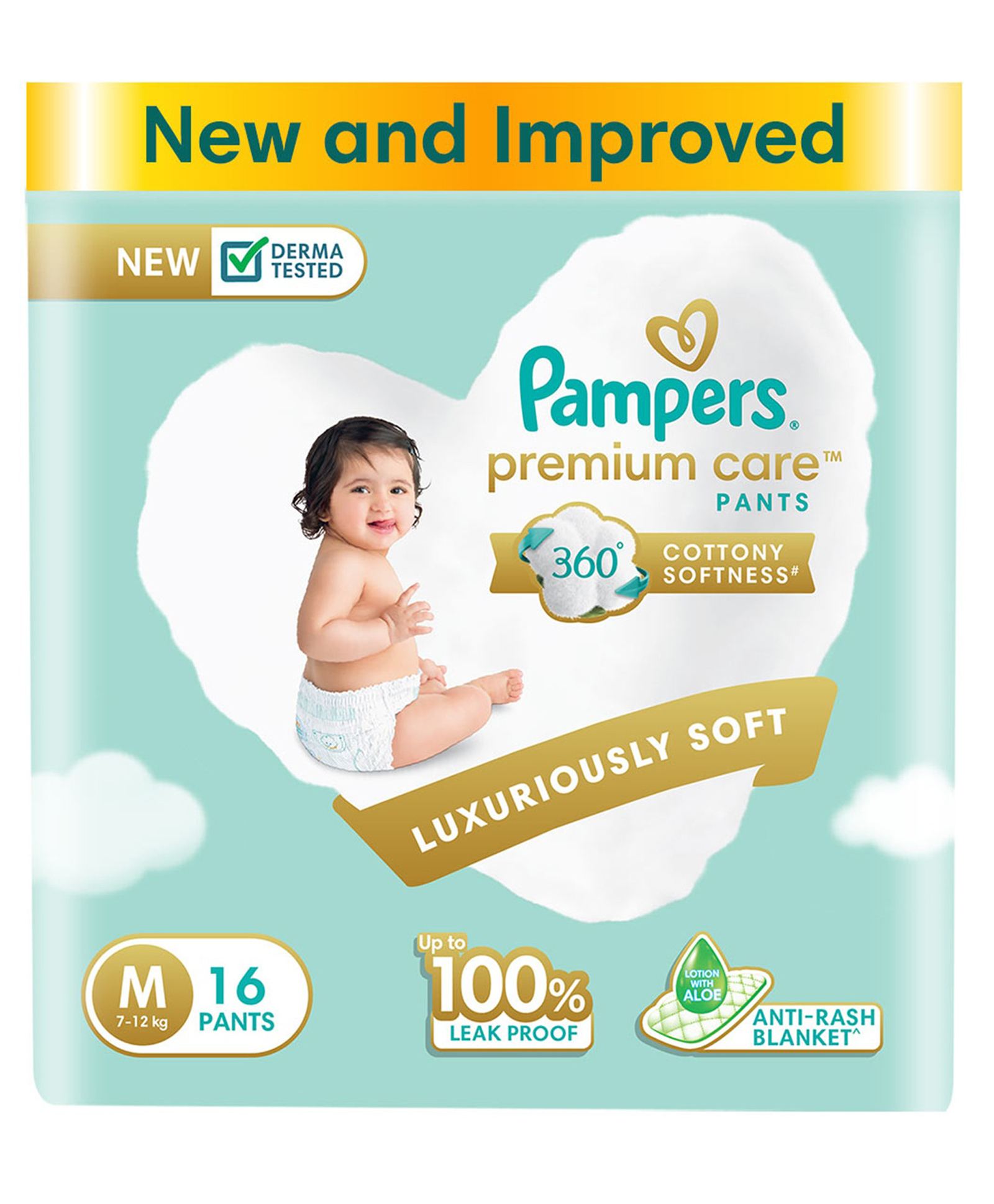 Pampers Premium Care Pants, Medium size baby diapers (M), 16 Count, Softest ever Pampers pants