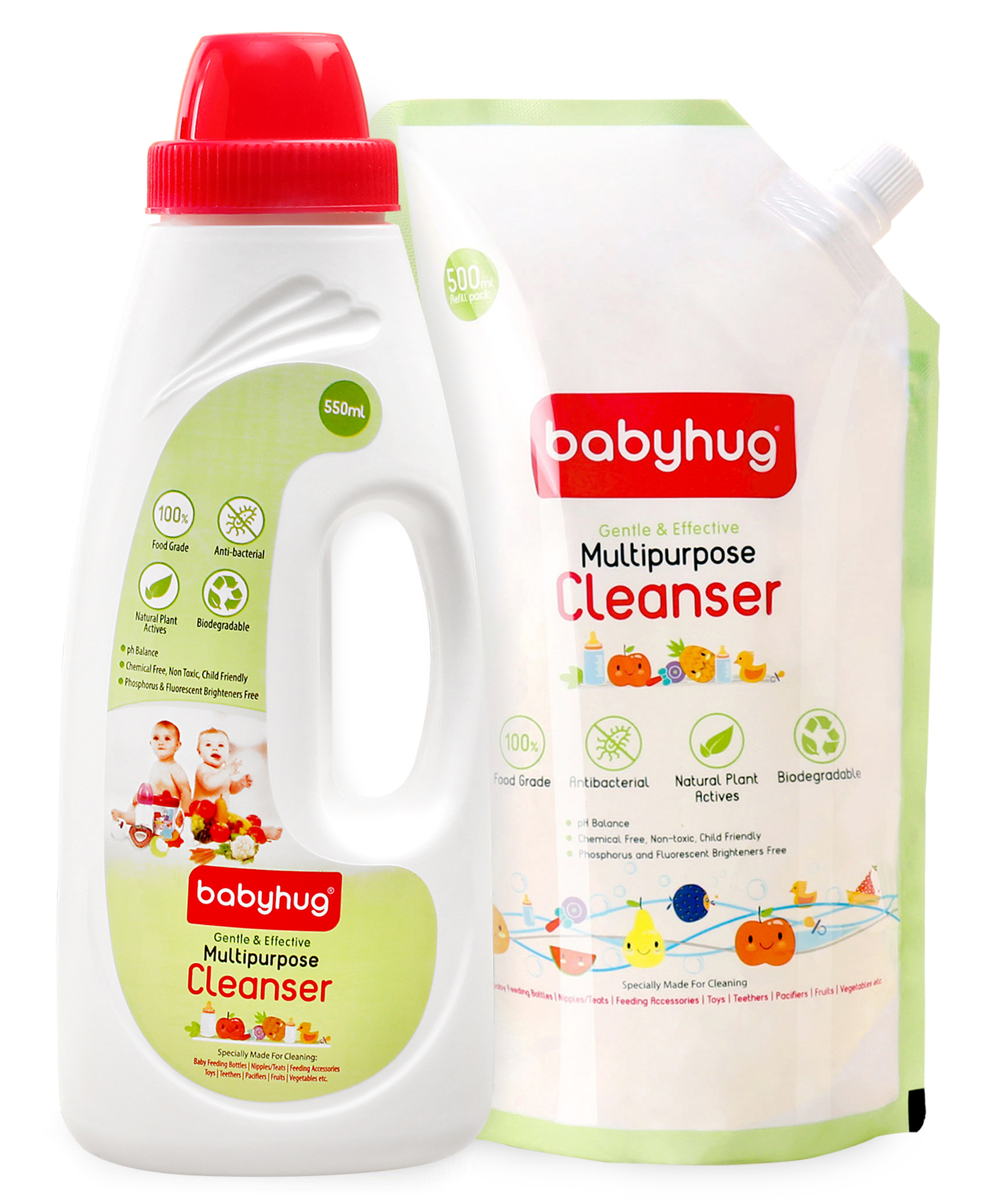 Babyhug Bottle & Veggie Cleanser Refill 500 ml| Food-Grade| Anti-Bacterial| Plant-Based| Removes Pesticides| Essential for Teething and Crawling Todlers