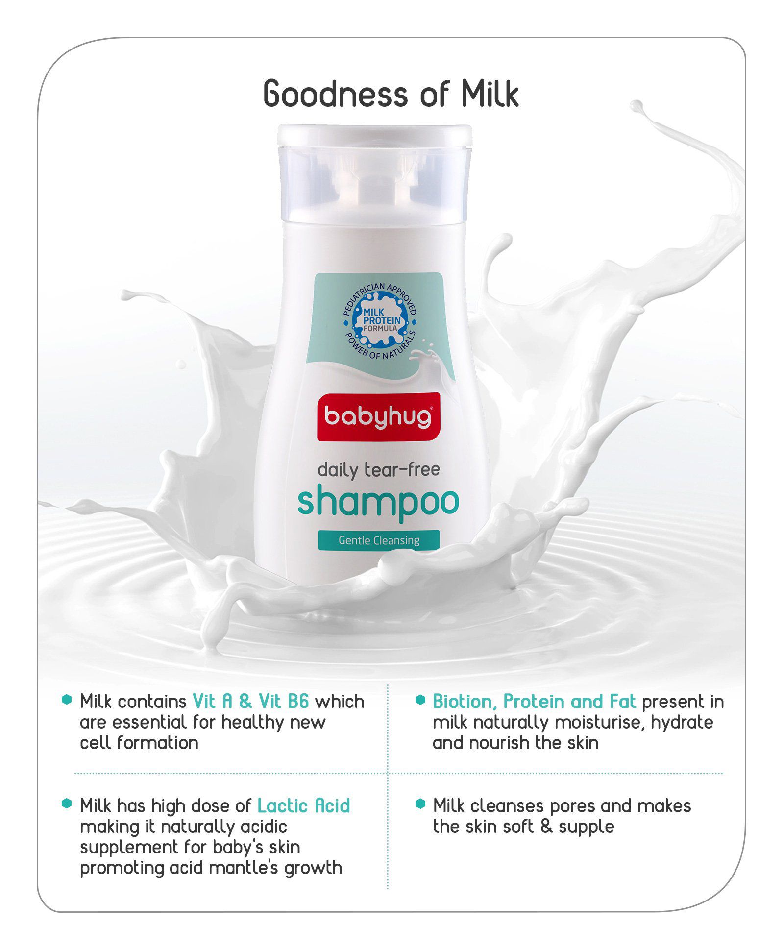 Babyhug Milk Protein Formula Daily Tear Free Milky Shampoo Ideal For Newborn Baby'S Delicate Scalp - 200 ml