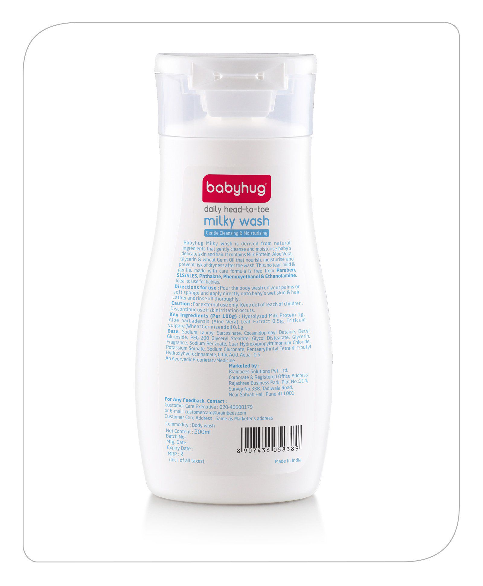 Babyhug Milk Protein Formula Daily Head To Toe Milky Wash No Tear Formula For Newborn Baby 2 In 1 Shampoo & Body Wash - 200 ml