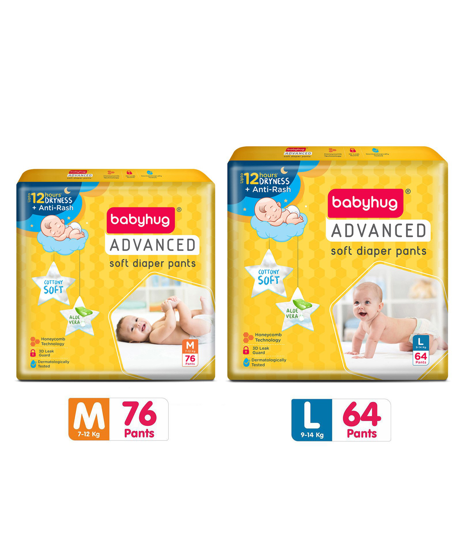 Babyhug Advanced Pant Style Diapers Medium - 76 Pieces & Babyhug Advanced Pant Style Diapers Large - 64 Pieces