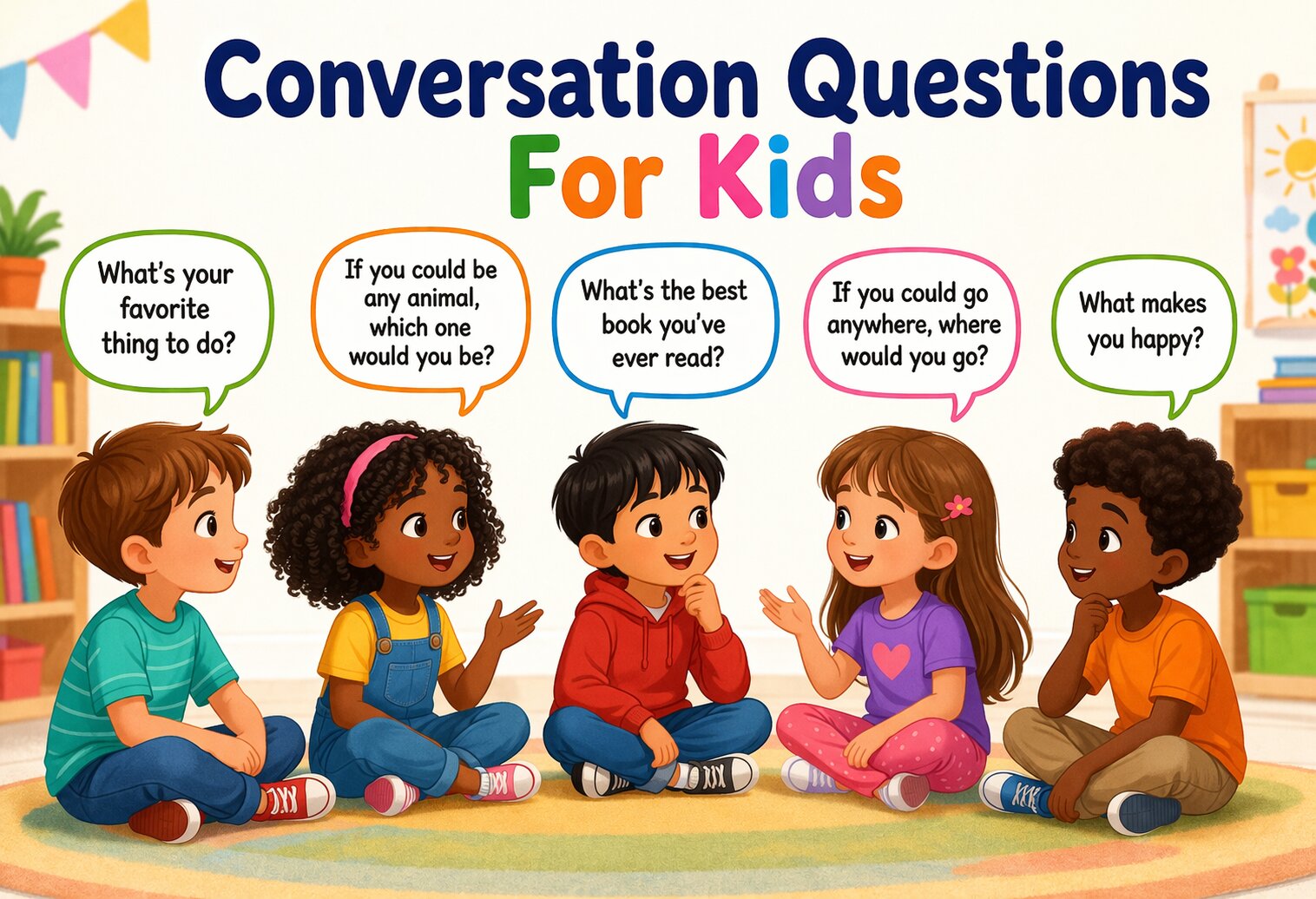 Conversation questions for kids play a crucial role in nurturing well-rounded communicators from an early age. These discussion questions for kids and conversation starters for students and children make daily English conversation enjoyable and habitual, helping little ones express thoughts clearly and listen attentively. They boost confidence, expand vocabulary, and sharpen critical thinking skills essential for school success and friendships. By sparking curiosity through fun prompts, children learn to articulate emotions, share stories, and respect others’ views. Regular use fosters empathy and social bonds, turning shy speakers into confident chatterboxes ready to thrive in any setting.